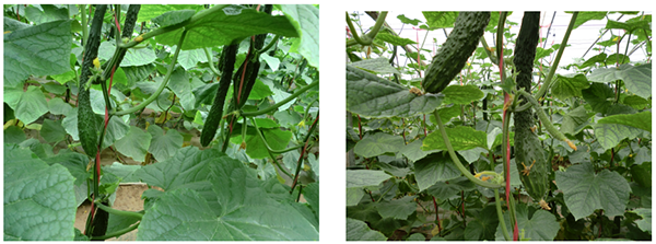 結(jié)果期:黃瓜生長前期吸收養(yǎng)分?jǐn)?shù)量較少,開花坐果前需肥量占總需肥量的15%左右。隨著生育期的推進(jìn),吸收養(yǎng)分?jǐn)?shù)量不斷增多,到結(jié)瓜期時(shí)達(dá)到吸收高峰,從結(jié)瓜至結(jié)瓜盛期,吸收養(yǎng)分?jǐn)?shù)量占全部需肥量的85%左右,其中50%~60%是在收獲盛期。根據(jù)這一特點(diǎn),坐瓜后要結(jié)合澆水適時(shí)適量的追肥補(bǔ)肥,滿足其生長需要,促進(jìn)產(chǎn)量和質(zhì)量。