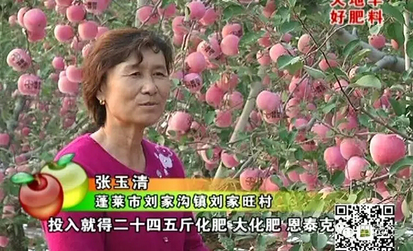 7年前,張玉清也和普通果農(nóng)一樣,對肥料不懂,真假都分不清,更別提科學施肥了,故樹勢狀況一般,蘋果一般,效益也一般。當眾德集團技術人員將眾德恩泰克套餐方案推薦給她時,她眼前一亮,但又半信半疑,抱著試試看的態(tài)度試用,結果秋季大豐收,樹體健壯度和花芽飽滿度令她對套餐充滿了信心。結果是,一口氣連用7年,越用越好,根本舍不得恩泰克了,真正信服了眾德套餐。2013年,在是否繼續(xù)使用眾德套餐的問題上,張玉清和丈夫曾發(fā)生過分歧,丈夫想變換肥料,說樹和人一樣需換換口味,但張玉清不肯,至于原因,她說有一件事讓她更加堅定用眾德套餐。有一年,一果樹學權威教授參觀其園,問大肥施用情況,張如實相告,年株用恩泰克24斤,分3次施入,并配合眾德生物有機肥株用25斤。教授大驚,大化肥用量大,土壤酸化會重,引起問題,不利產(chǎn)量和質量。張玉清從未測過土,只耳聞過酸化危害,但她的樹株產(chǎn)500-700斤,表光、個頭及色澤俱佳,若有問題,會有7年的豐產(chǎn)嗎?教授也納悶,通過土樣化驗,PH是6.3,屬適宜范圍。教授驚訝于如此大的施肥量,連續(xù)7年如此,土壤未酸化,問恩泰克是何肥料,張的回答是,德國巴斯夫研發(fā)的中性全營養(yǎng)穩(wěn)定性長效肥,國際品牌,教授亦感嘆于德國人的專業(yè)與高明。此事是堅定張大姐信心的原由。